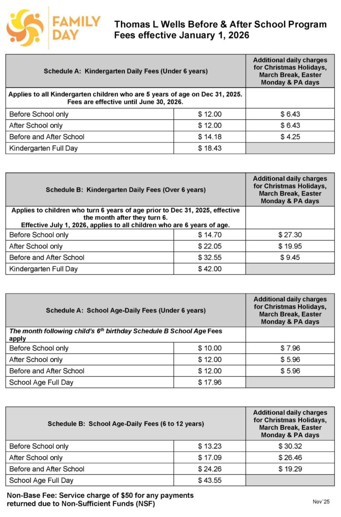 For information on a child care fee subsidy, please contact the City of Toronto Children’s Services Department