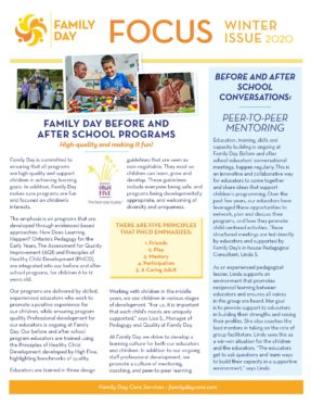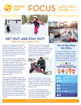 We are well into the fall/winter season and this year many of us have had a new and valued appreciation for the great outdoors and enjoying nature. Family Day staff across our programs have certainly taken advantage of opportunities to be outdoors. T...