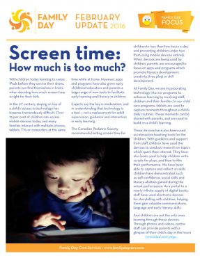 Welcome to 2016! The world of early learning and child care continues to evolve and transform with another set of regulation changes potentially arriving from the provincial government over the next couple of months. Family Day continues to work thr...