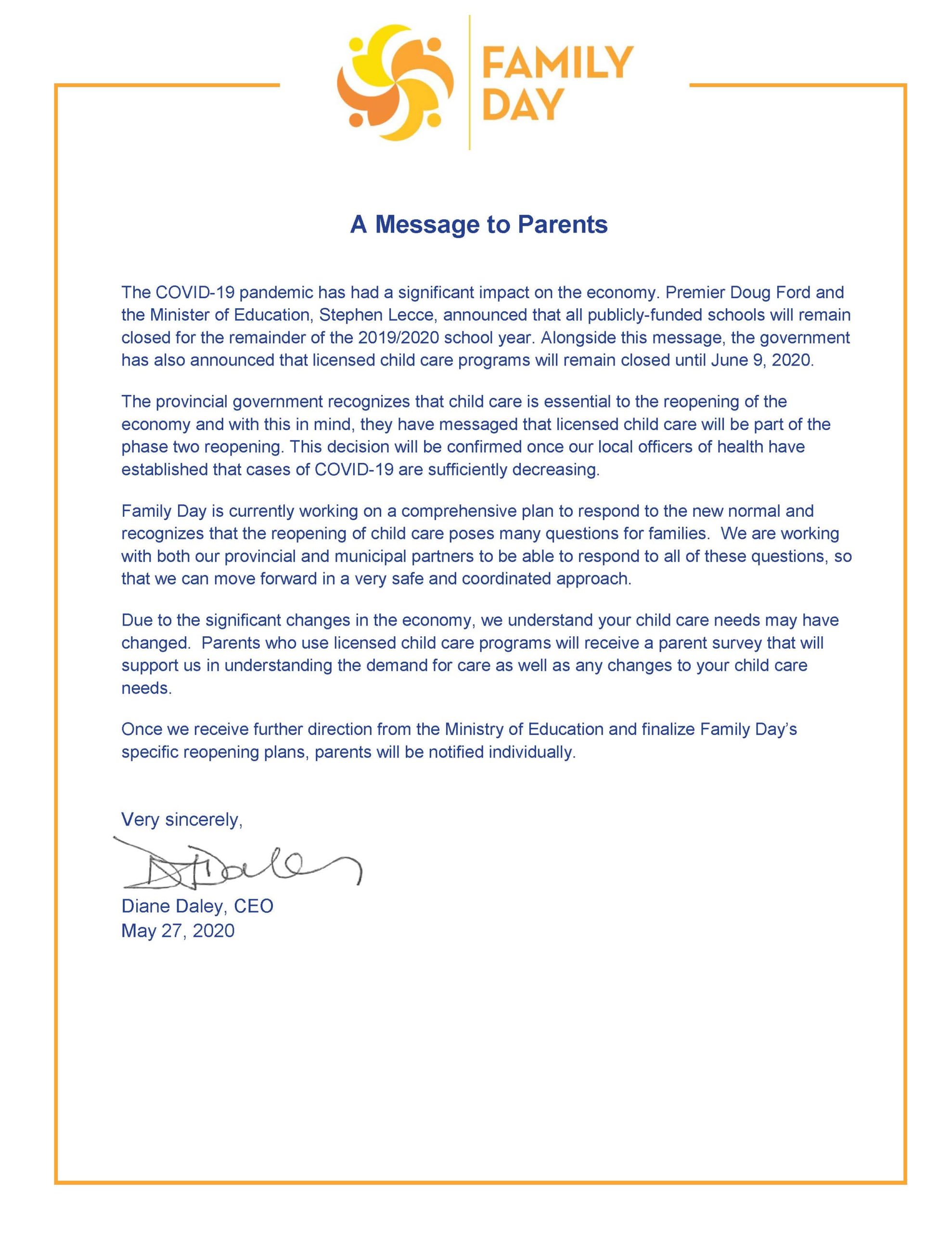 News 27May By Family Day Care Leave your thoughts A Message to Parents Social Share: Twitter Facebook Google+