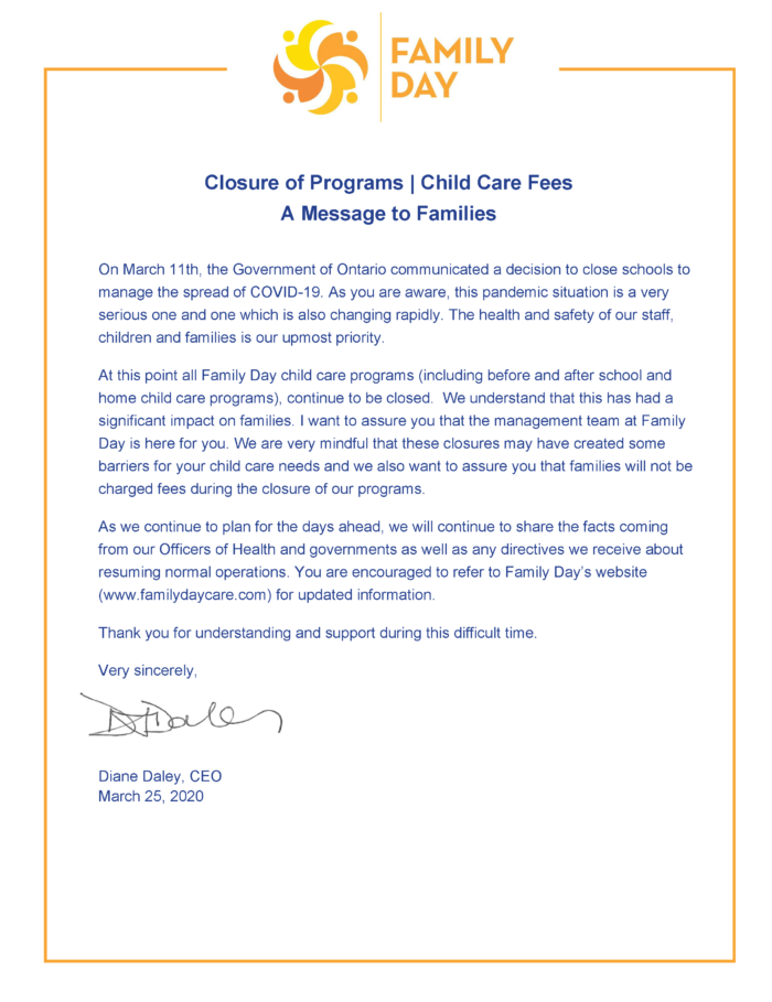 News 25March By Family Day Care Leave your thoughts Closure of Programs – Child Care Fees | Message to Families Social Share: Twitter Facebook Google+