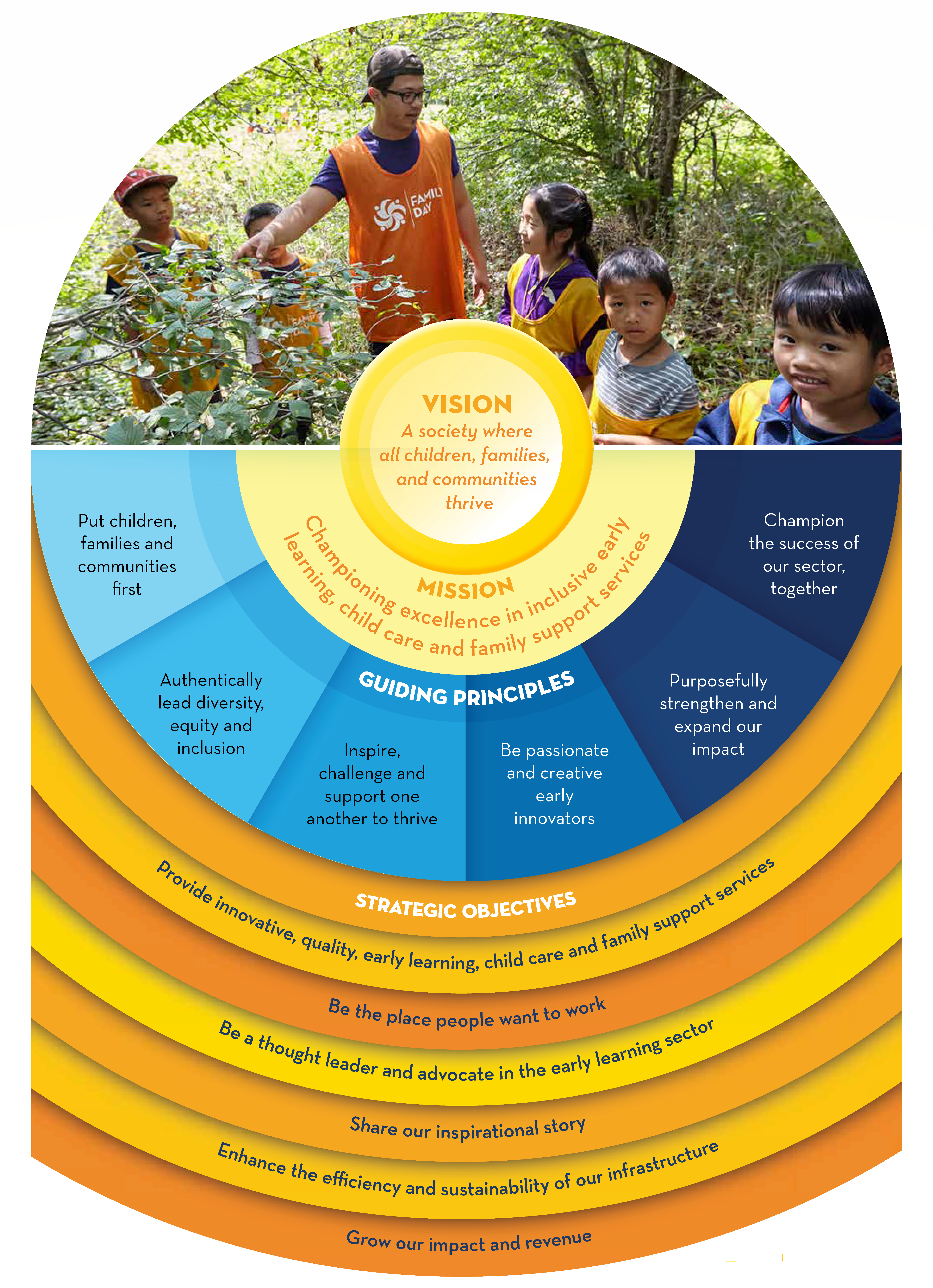Our Way Forward, Family Day’s Strategic Plan for 2023 to 2025, is a reflection of our ongoing efforts to meet the needs of our teams and the people we serve. It demonstrates our commitment to a modern, innovative, inclusive and responsive organization that puts children, families, and communities, first.