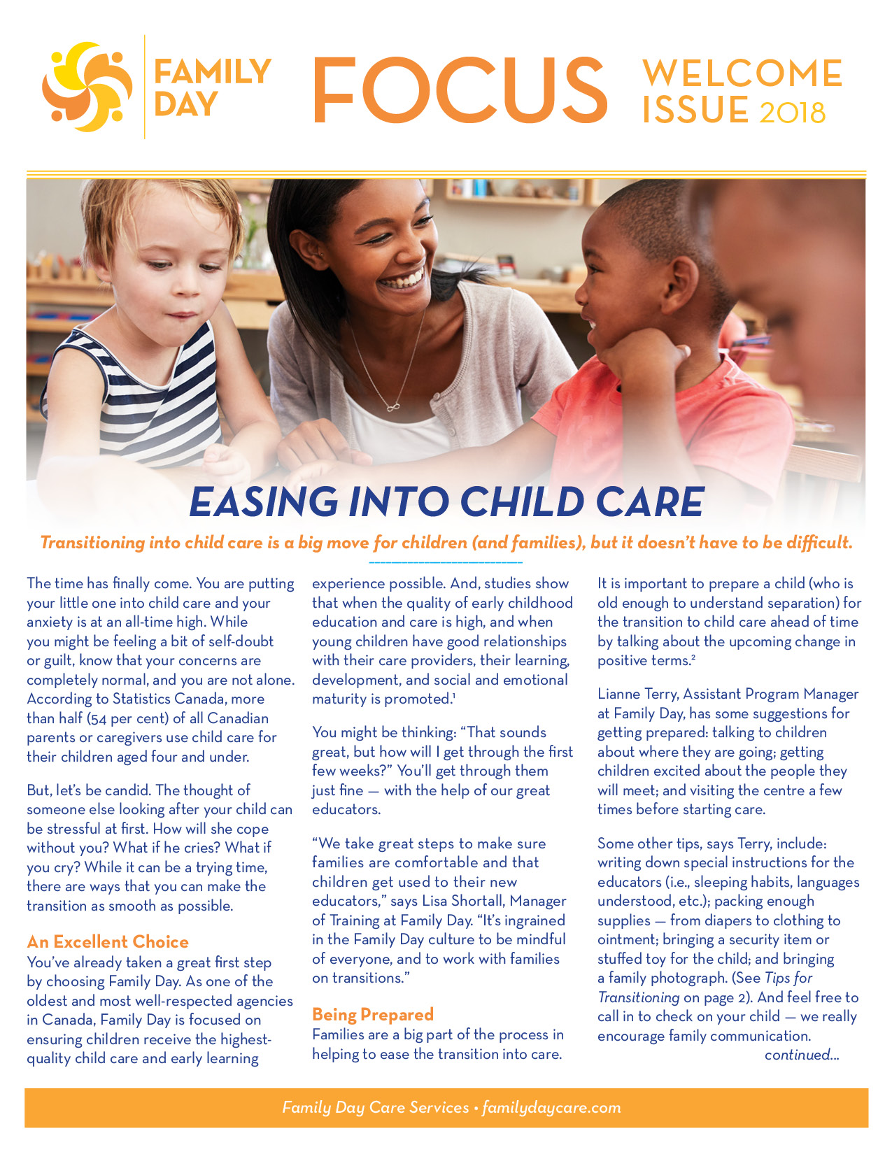 It is my pleasure to welcome all new and returning children and their families to our programs. Your choice of child care is a very important decision. Naturally, you are concerned about your child’s education and safety within the school and child care environments. Thank you for choosing a Family Day program and putting your trust in us.